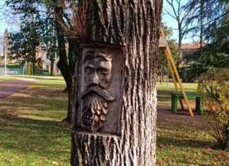 Due nuovi alberi e un volto scolpito su un tronco morto:...