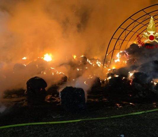 Deposito di 500 rotoballe distrutto da un furioso incendio