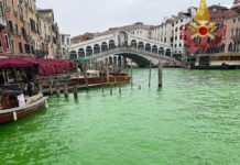 Questa mattina il Canal Grande di Venezia si è di nuovo colorato di verde: un'azione dimostrativa ripetuta stamane in altre nove città italiane (fra...