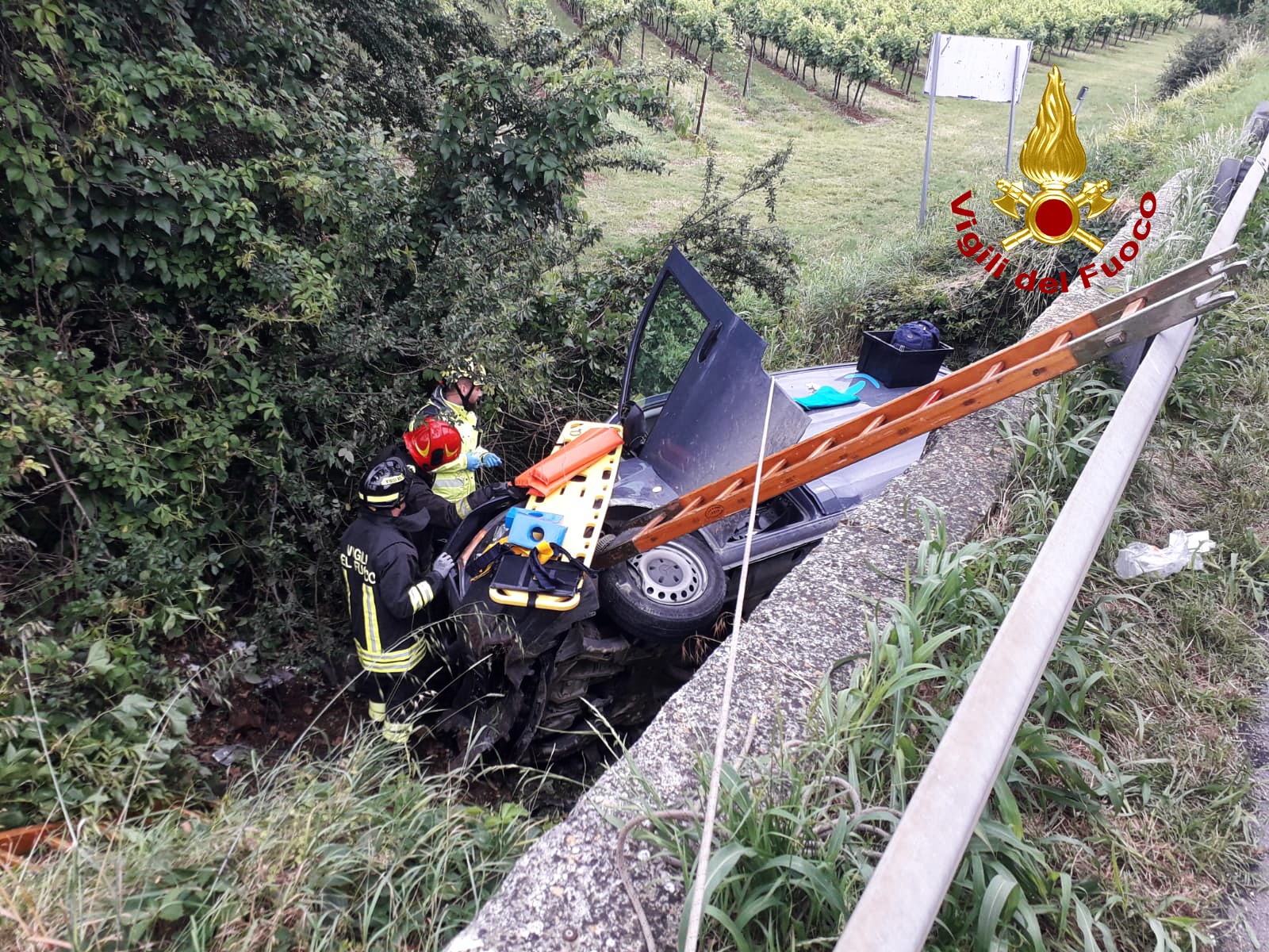 Poco prima, la squadra di pompieri arrivata dal distaccamento del Bassovicentino di Lonigo aveva messo in sicurezza il mezzo danneggiato ed estratto il conducente dolorante ma a quanto pare rimasto cosciente. La Sp500 nel tratto interessato dall’incidente è rimasta bloccata durante le operazioni di soccorso fino al decollo dell’elicottero. La polizia locale ha eseguito i rilievi del sinistro, anche al fine di verificare il coinvolgimento di altri veicoli nella dinamica dell’uscita di strada, altrimenti dovuta a una distrazione, a un malore alla guida o a un guasto meccanico.