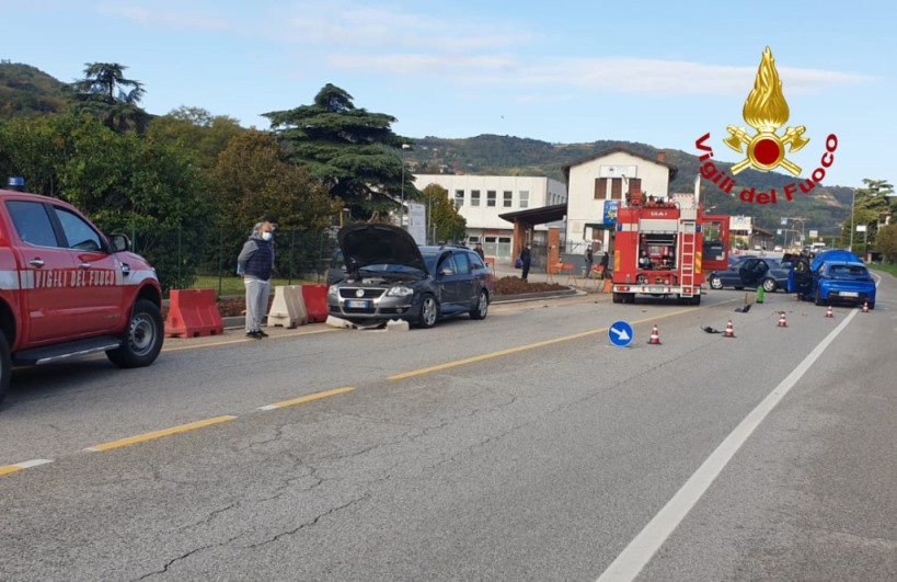 I pompieri arrivati da Arzignano hanno messo in sicurezza le tre auto (di cui una elettrica) e hanno prestato la prima assistenza ad un passeggero rimasto ferito, che viaggiava a bordo di una Volkswagen Passat con altre due persone, rimaste illese.