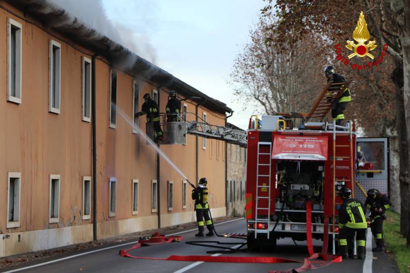 Per consentire le operazioni di soccorso è stata chiusa la strada San Feliciano. I vigili del fuoco sono riusciti in breve tempo a circoscrivere le fiamme, sezionando la parte centrale del tetto in legno del fabbricato, lungo circa 80 metri e largo 15. Gravi danni al primo piano dello stabile. Sono ora in corso le operazioni di completo spegnimento delle travature e lo scoperchiamento della copertura per escludere altri focolai ancora presenti. Le cause dell’incendio sono in corso di accertamento. Le operazioni dei vigili del fuoco proseguiranno presumibilmente tutta la giornata di oggi.