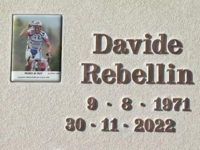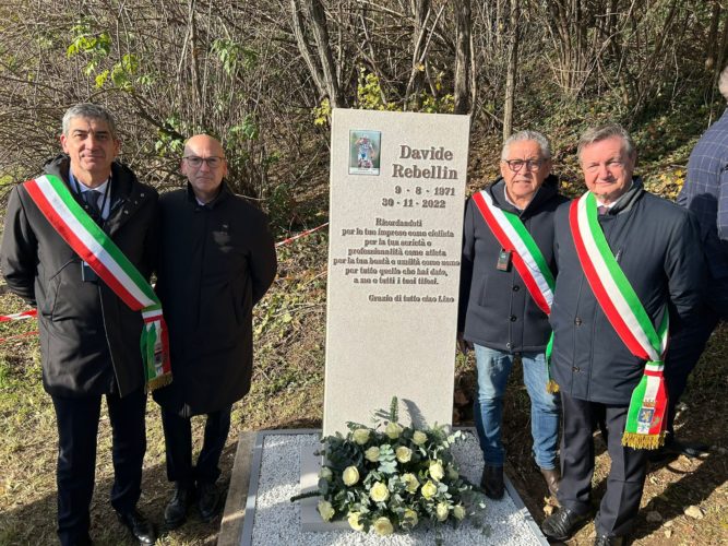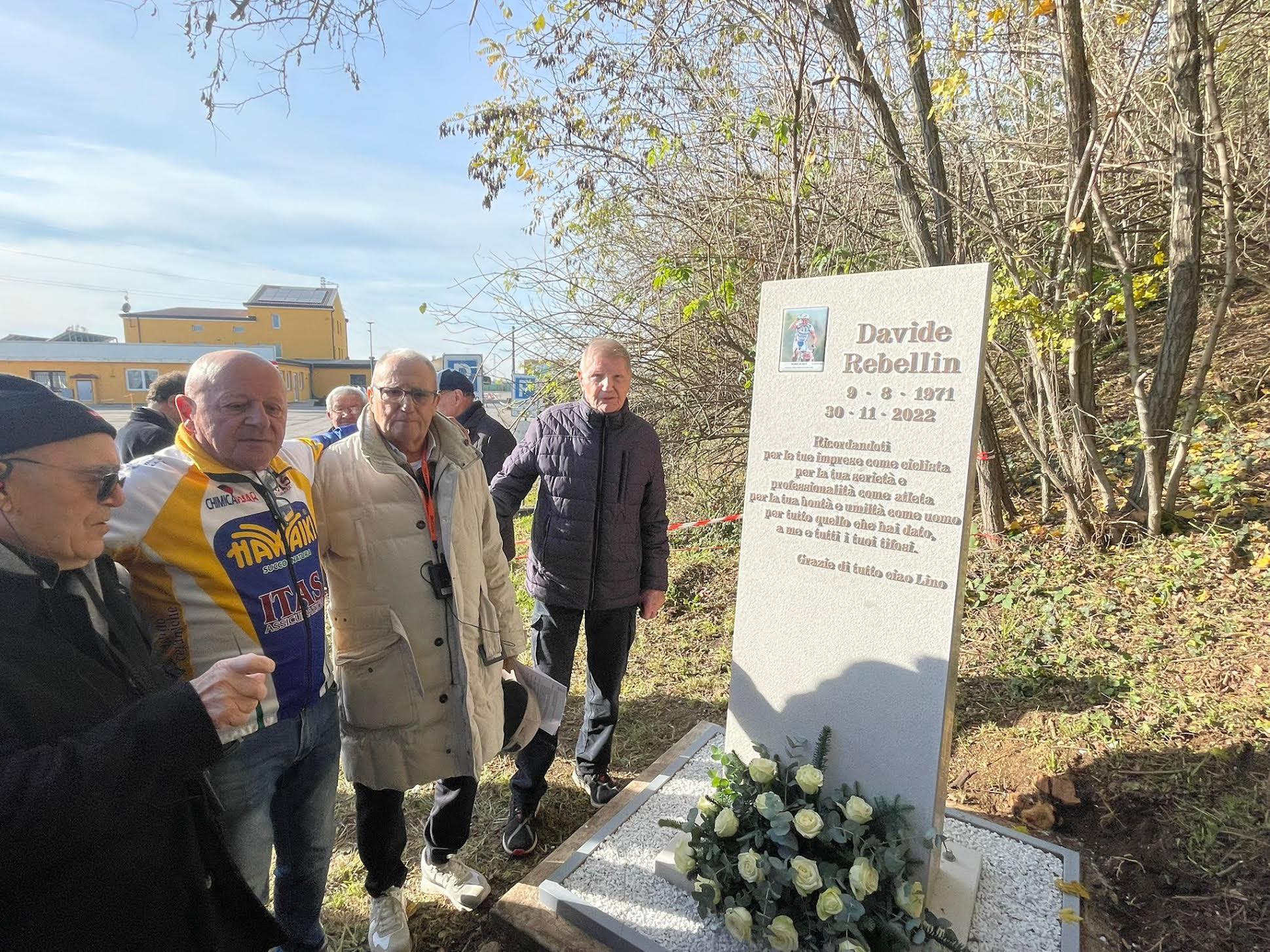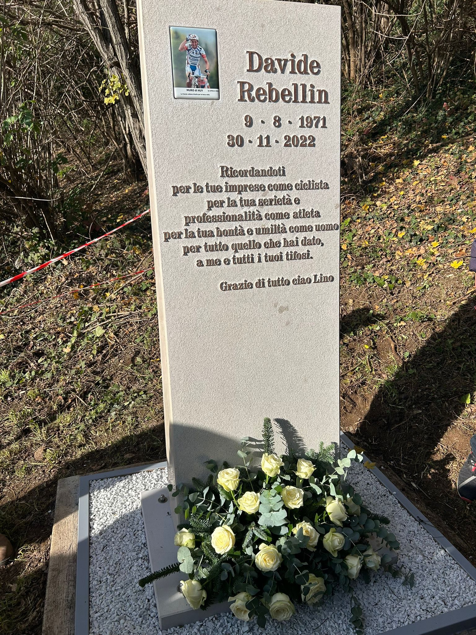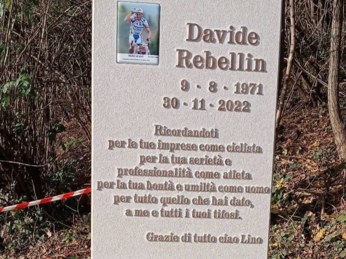 Una stele a Montebello Vicentino da ieri ricorda il campione di ciclismo Davide Rebellin, a pochi passi dal luogo dove è morto, ucciso dall’autista di un camion il 30 novembre 2022, a soli 51 anni.
