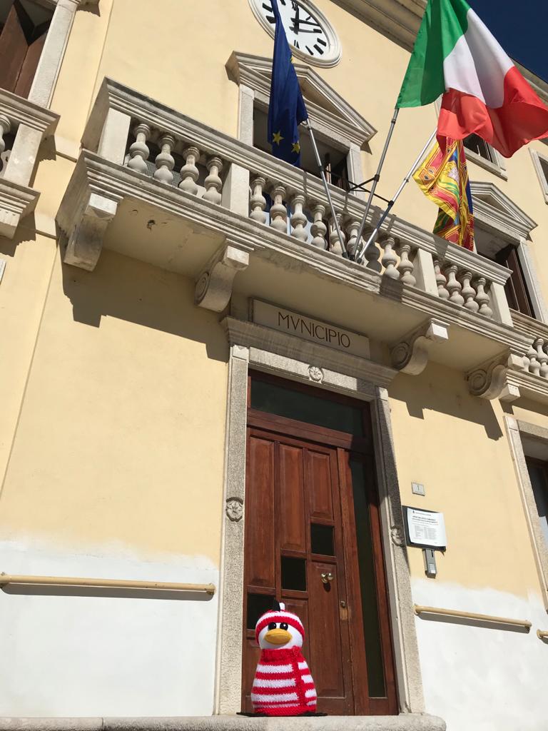 Un papero di pezza “cittadino onorario” di Montebello. Adottato in segno di speranza