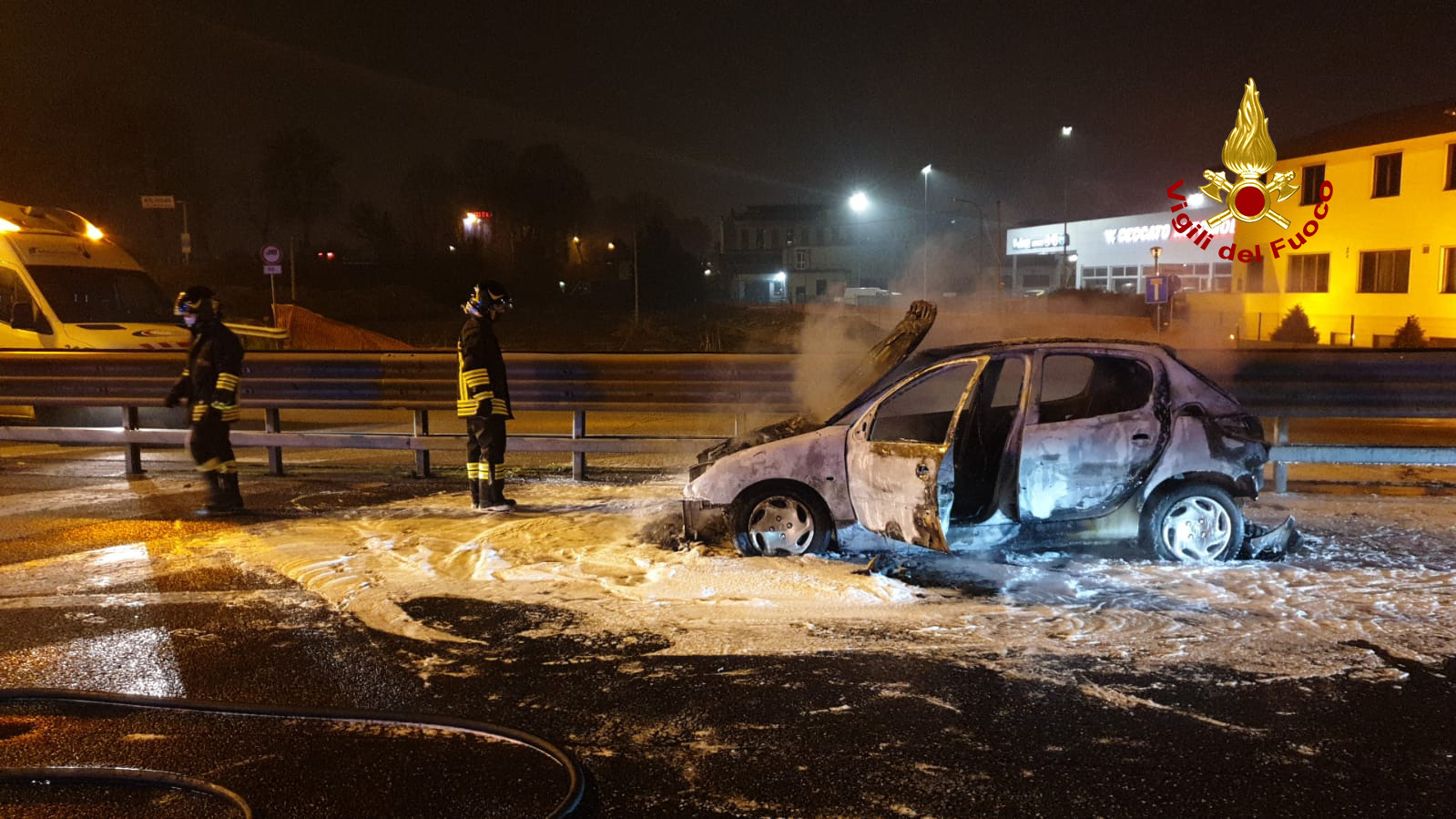 Avaria al motore, auto in fiamme al casello di Montecchio Maggiore