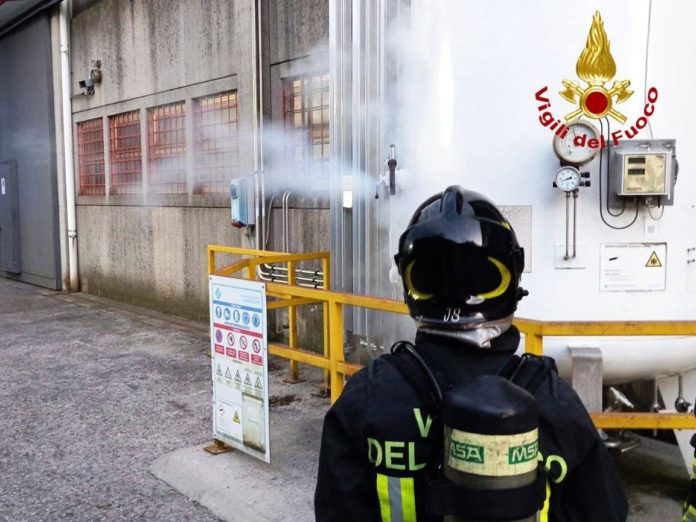 Fuoriuscita di azoto da un serbatoio industriale: vigili del fuoco in azione