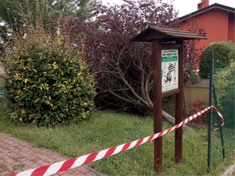 Alberi spezzati, rami pericolanti, giochi per bambini danneggiati e, quindi, situazioni da verificare con attenzione in termini di sicurezza per il cittadino e l’utente degli spazi verdi pubblici ad Arzignano e le sue frazioni. Sono stati chiusi ieri i cancelli di 38 tra parchi e giardini a libero accesso della città, a scopo di prevenzione e per favorire i sopralluoghi e i lavori di rimozione di alberature cadute sabato scorso sotto le sferzate di vento e grandine, nel corso del violento nubifragio che ha colpito l’Ovest Vicentino.
