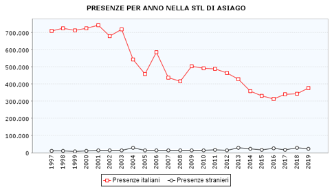 Secondo i dati statistici regionali, il turismo in Altopiano sarebbe in decrescita negli ultimi decenni: è evidente però che in realtà molte delle presenze turistiche nel territorio non sono censite in quanto costituite da soggiorni presso abitazioni private, che sembrano sfuggire ad ogni forma di rendicontazione, anche fiscale. Dal 2017, per far fronte al fenomeno nazionale delle locazioni brevi (della durata di meno di 30 giorni) gestite per  lo più on line, la legge italiana prevede un’apposita disciplina fiscale quando stipulate da persone fisiche al di fuori dell’esercizio di attività d’impresa.