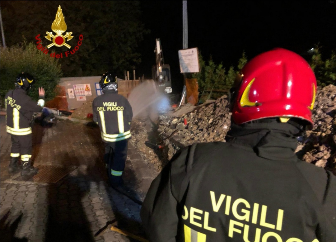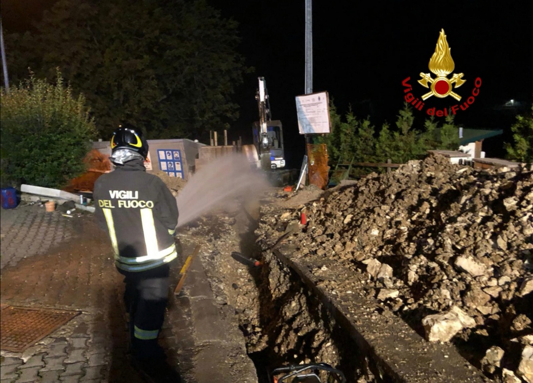 Gli scavi per l’impianto di depurazione tranciano il tubo del gas a media pressione: pompieri all’opera