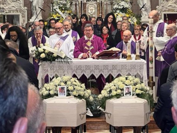 Le famiglie, strette nel dolore, hanno accompagnato le bare dei due amici, circondati da amici e conoscenti e da tante persone che hanno sentito il bisogno di esserci.