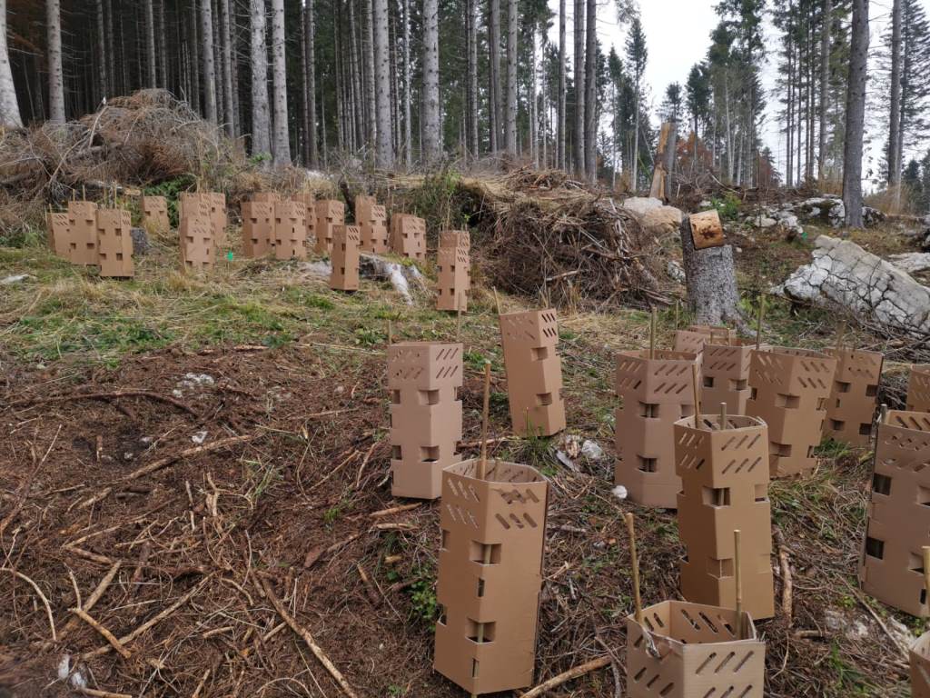 La prima fase del progetto, programmata nella settimana precedente l’anniversario della tempesta (che, con venti fino a 200 km/h, ha distrutto 2.300 ettari di bosco in tutto l’Altopiano e 400 circa nel Comune di Asiago) prevede la realizzazione di un rimboschimento dimostrativo. Per proteggere le piante appena messe a dimora dagli “appetiti degli animali del bosco, verranno utilizzati non i tradizionali tubi in plastica, ma degli shelter in cartone sostenibile certificato Fsc forniti dalla ditta Redbox. Nella primavera 2021 arriverà invece la seconda fase, con la conclusione delle operazioni di impianto su tutta la superficie prevista, e la contestuale predisposizione della cartellonistica informativa.