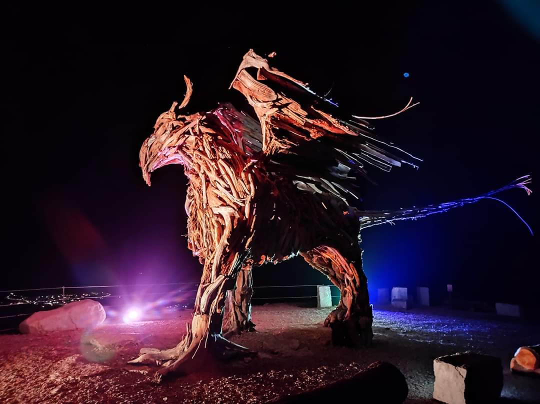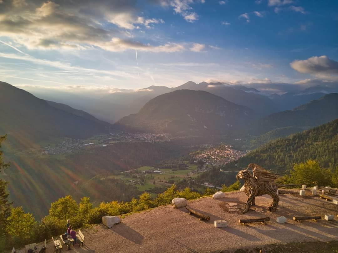 Il corpo del leone della Serenissima, la testa dell’aquila tirolese: è il Grifone realizzato dallo scultore di Roana Marco Martalar e realizzato – anche questo – con i legni degli schianti della tempesta Vaia del 2018.