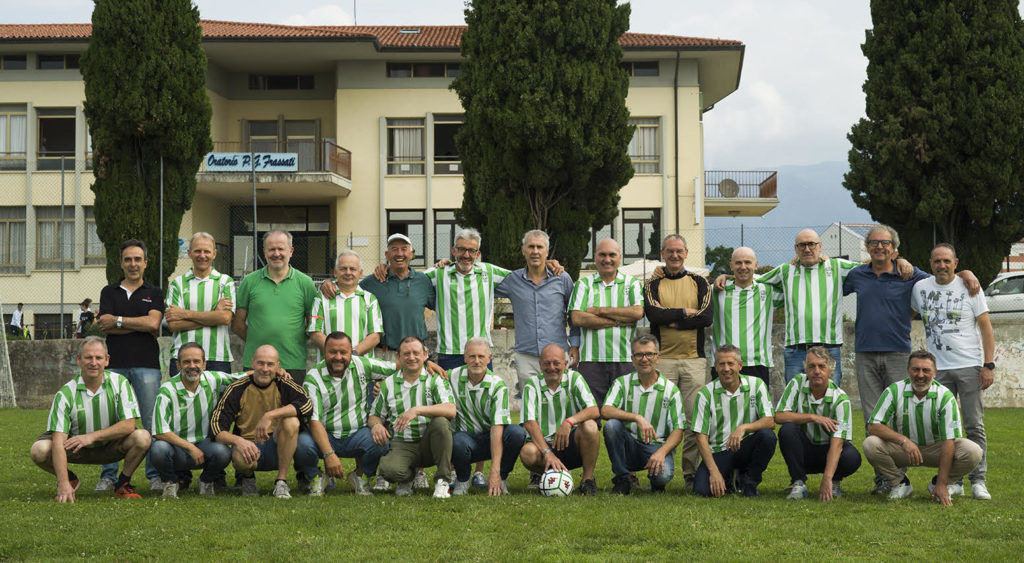 Missione compiuta, fatta salva l’assenza di due dirigenti venuti purtroppo a mancare, ma anche aggiungendo tre giocatori assenti nella foto amarcord, non convocati alla partita ma parti integranti della banda Santa Croce: giovanotti di allora per età e la voglia di baldoria e oggi come allora nello spirito. Sono cambiati i palloni da sfoggiare mettendosi in posa, i modelli delle magliette (ma non i colori del cuore), e le auto parcheggiate sullo sfondo dello stabile dell’oratorio invece sempre al suo posto, così come i protagonisti veri di un’annata da “per sempre”.
