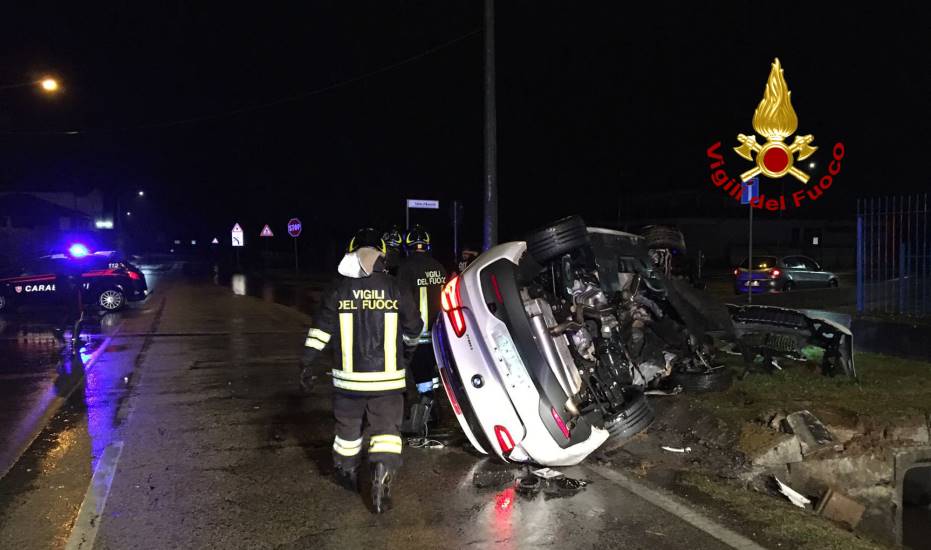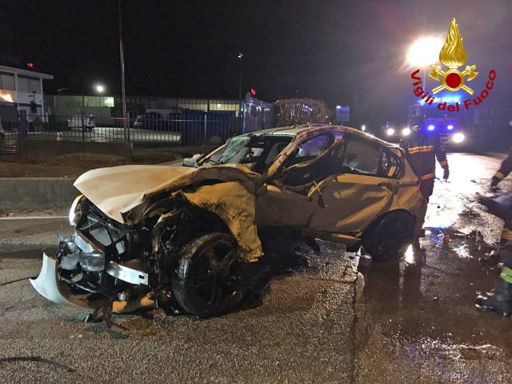 Il giovane è rimasto intrappolato all’interno dell’abitacolo della sua auto, dopo che questa si è rovesciata in via vittoria sulla Strada Provinciale 248, che da Bassano porta a Montebelluna, all’incrocio con via Salvo D’Acquisto intorno alle 2.20 della notte fra sabato e domenica.