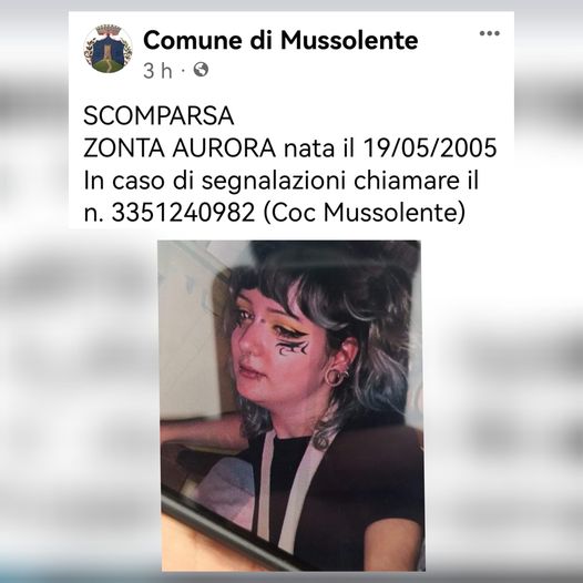 Nel caso i privati rintraccino qualche immagine importante e utile per il ritrovamento di Aurora, segnalate chiamando il numero 335-1240982 del Centro Operativo Comunale di Mussolente.