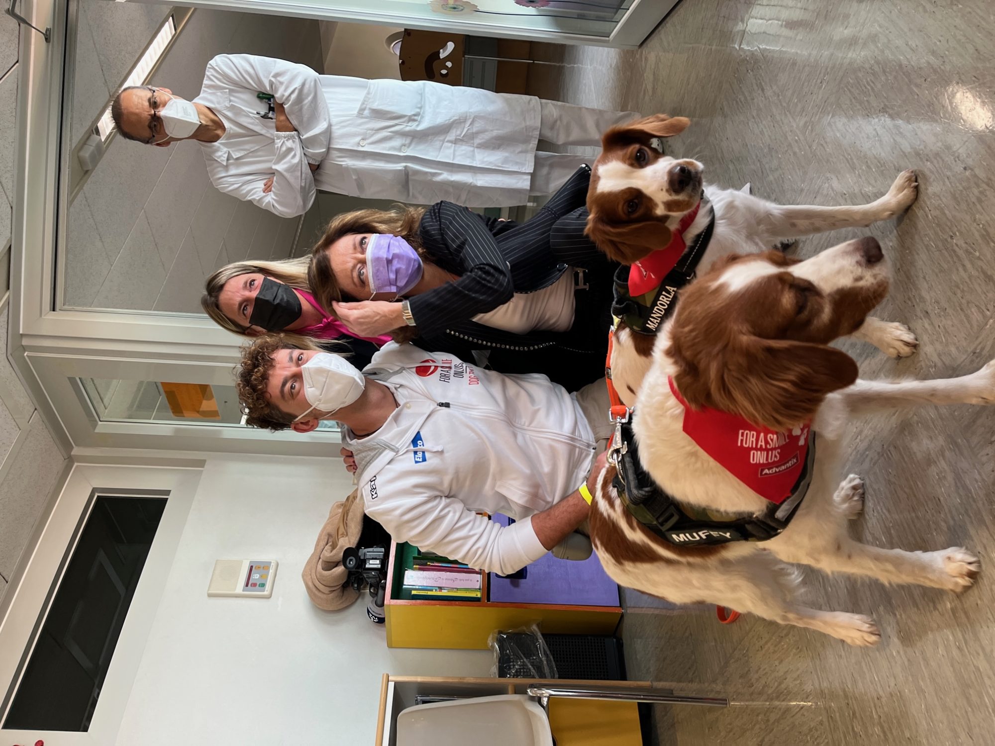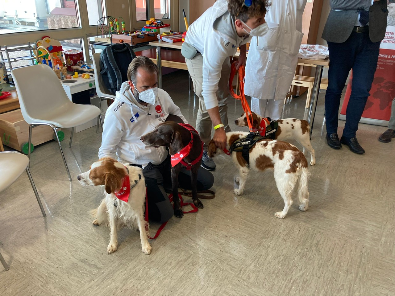 Più precisamente si parla in questo caso di “dog therapy”, considerando che i protagonisti scodinzolanti a quattro zampe sono dei cani di media taglia, tra cui spicca “Mandorla” che ha posato con il direttore generale di Ulss 7 per una foto ricordo. Una delle immagini scelte come simbolo per progetto “Basta una zampa”, il progetto così denominato che continua a regalare un sorriso ai bambini ricoverati nelle stanze di Pediatria, al fine di rendere la loro permanenza in ospedale un’esperienza meno traumatica.