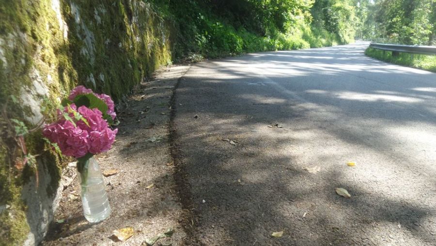 Fiori sul luogo dell’incidente (Foto Facebook Michele Bittante)