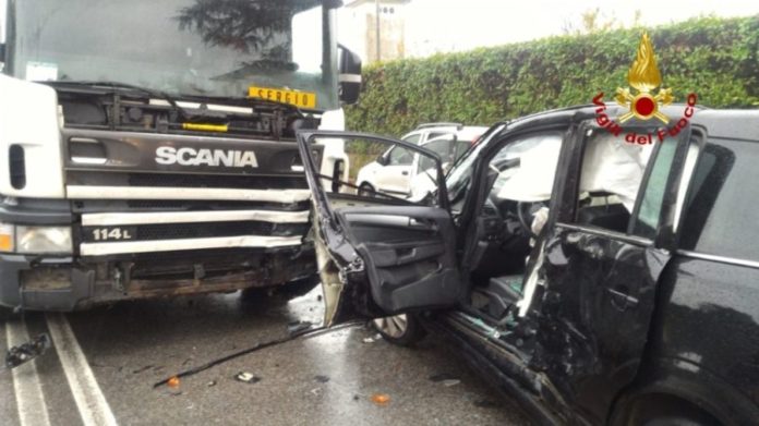 L’incidente ha coinvolto due auto e un mezzo pesante e ha richiesto l’intervento dei vigili del fuoco per estrarre da una Opel Zafira un automobilista. Il ferito è stato preso in cura dal personale del Suem 118 e portato in ospedale. Illesi i conducenti di una Fiat Panda e del camion Scania.