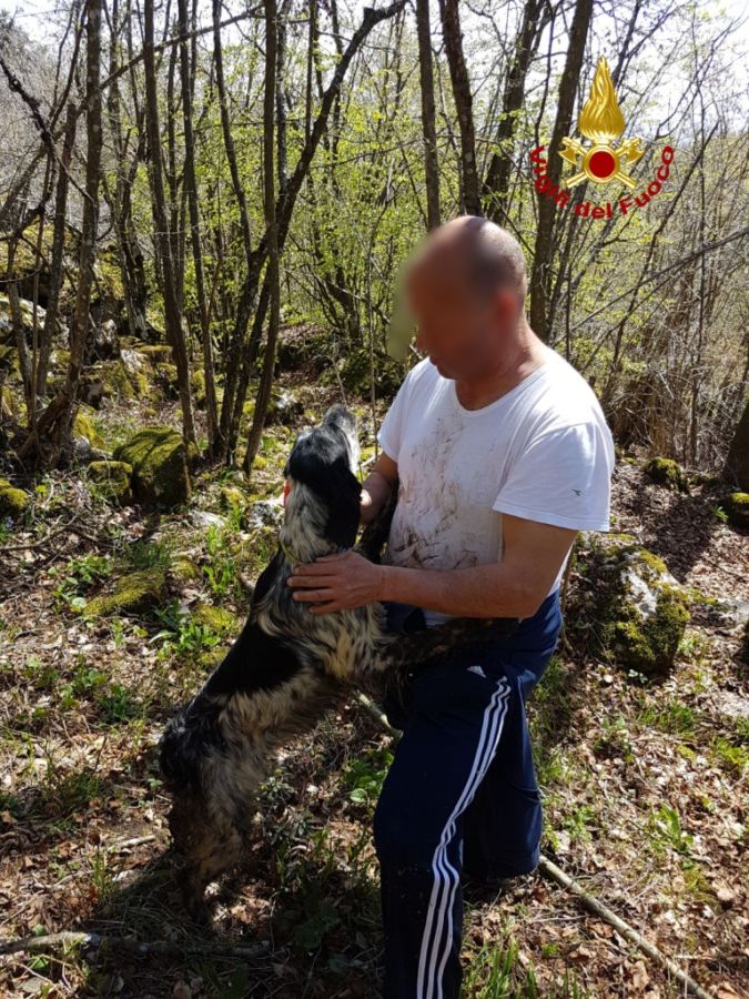 Il cane era molto affamato ma in buone condizioni di salute ed è stato riconsegnato al felice proprietario. Le operazioni di recupero sono durate circa due ore.