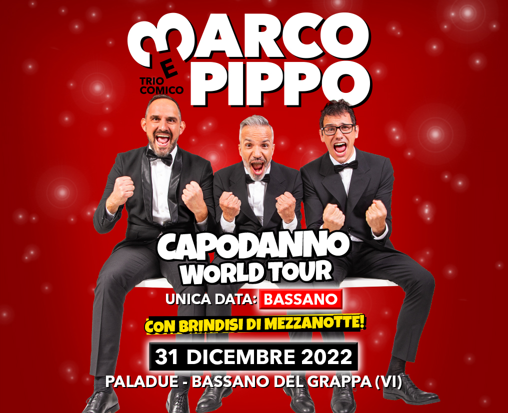 Marco e Pippo raccontano così lo show in programma per l’ultimo dell’anno: “ ‘Capodanno World Tour – Unica Tappa: Bassano’ è uno spettacolo speciale che mescola pezzi inediti a pezzi già visti, con la presenza dei nostri personaggi storici e di alcune nuove sorprese. Sarà una serata di festa, musica live, risate e tanta carica. È anche il modo migliore per partire alla grande con l’anno nuovo e lasciare alle spalle i cattivi pensieri! Ed è soprattutto il nostro modo per dire a tutti grazie per l’affetto, il calore e la gioia che portate da ormai molti anni nelle nostre vite”.