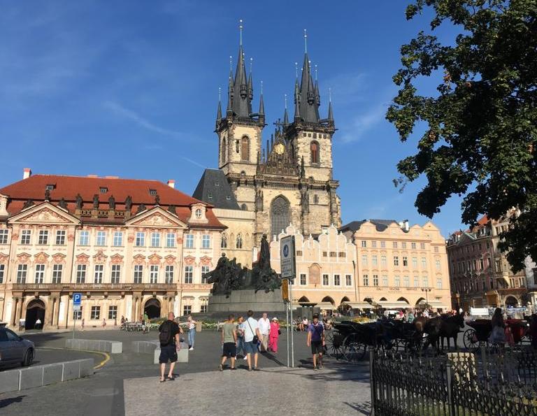 Le quattro ore di treno scorrono via veloci, verso le 11 sono a Praga, capitale dell’unico paese senza euro che mi appresto a visitare, perciò si presenta il problema del cambio, con me ho pochi contanti e il bancomat: prelevare non se ne parla (mi “mangiano” al tesso di cambio) e farsi cambiare il contante non ci penso per lo stesso motivo: spero solo che ci siano i POS nel caso dovessi acquistare qualcosa, ma scoprirò ben presto che non è sempre il caso. Esco dalla stazione dei treni e la prima cosa che noto è chiaramente il cambiamento di lingua parlata, ha suoni molto simili al serbo, ma comunque non ci capisco una cippa. Vengo subito approcciato da qualche spacciatore e uno addirittura inizia a urlarmi qualcosa nella sua lingua: penso che volesse vendermi qualcosa, mi allontano e risolvo il problema, non sarebbe intelligente rispondere con la violenza contro una persona sotto l’effetto di sostanze che non oso neanche immaginare. Mi incammino per raggiungere il primo monumento nella “to see list”, cioè la Prašná Brána (Torre delle polveri).