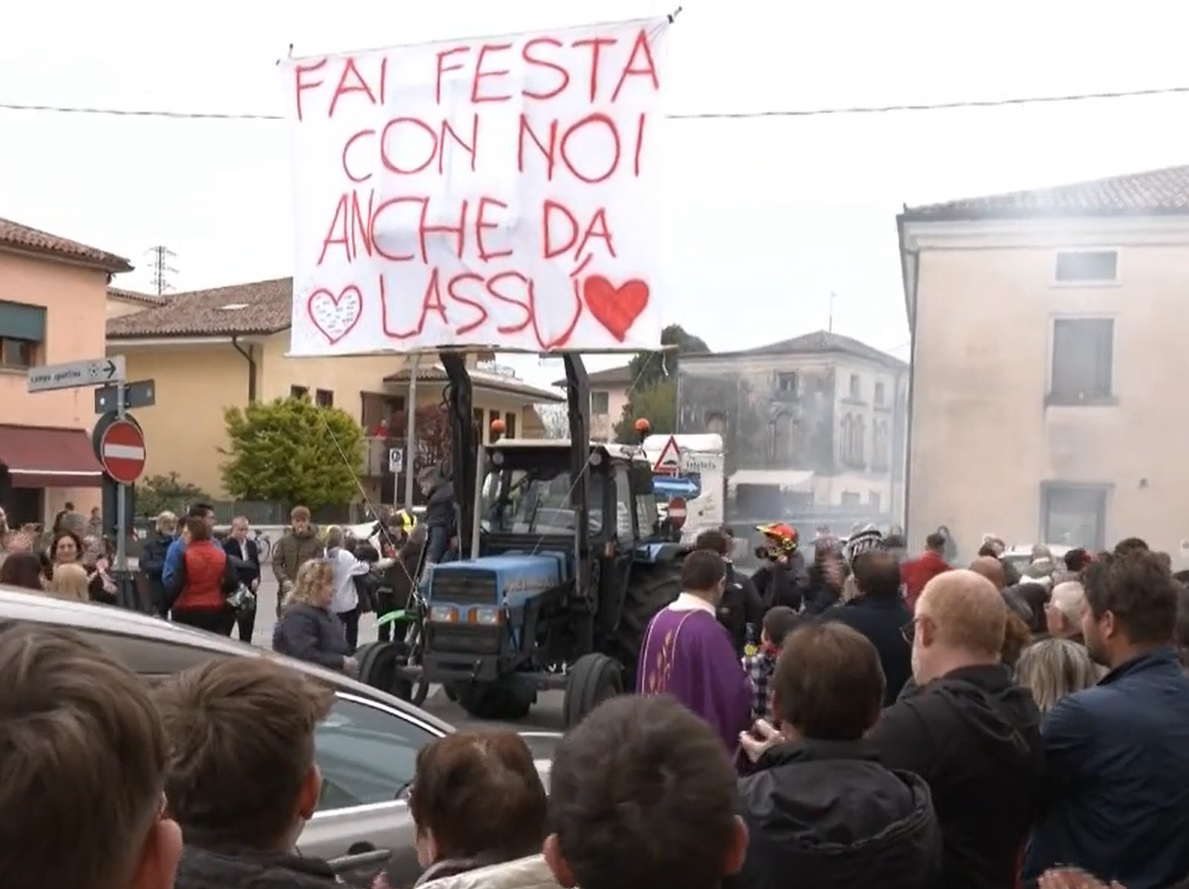 Gli amici hanno scortato il carro funebre in chiesa in motorino e con quelle due ruote, mezzo di amicizia e delle prime libertà adolescenziali, hanno sgasato per salutarlo a fine cerimonia. I ragazzi della sua compagnia sono arrivati sul piazzale della chiesa anche con uno striscione che riportava la scritta “Fai festa con noi anche da lassù”.