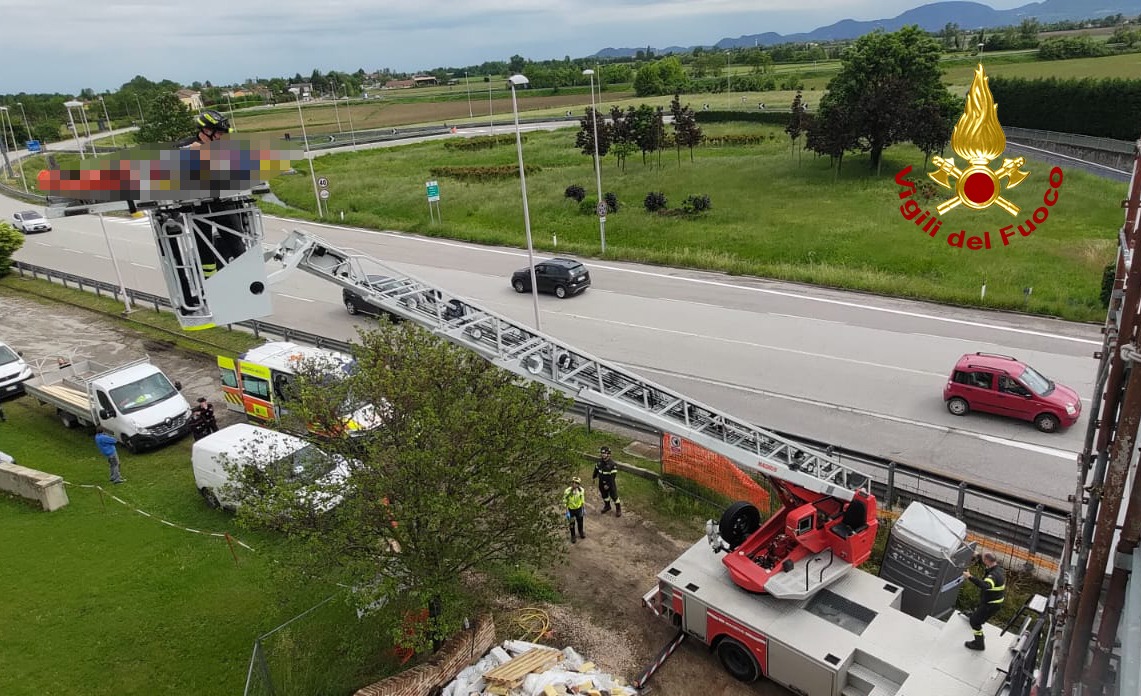 I vigili del fuoco arrivati da Vicenza, hanno caricato sulla barella dell’autoscala il ferito, già stabilizzato dai sanitari del Suem, e portato a terra. L’uomo è stato trasferito in ambulanza in pronto soccorso a Vicenza. Sul posto anche i carabinieri. Le operazioni di soccorso sono terminate dopo circa un’ora.