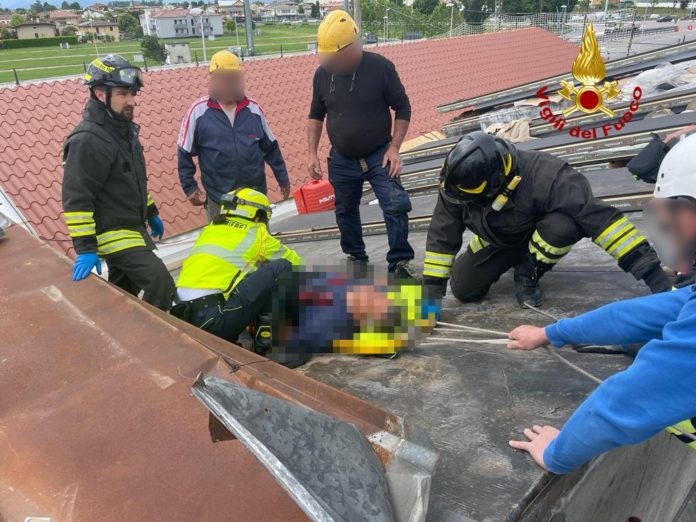 Spettacolare salvataggio di un operaio edile infortunato oggi a Grisignano di Zocco. Alle 15:15, i vigili del fuoco sono intervenuti in Via Roma per soccorrere l’uomo, infortunatosi sul tetto di un cantiere edile.