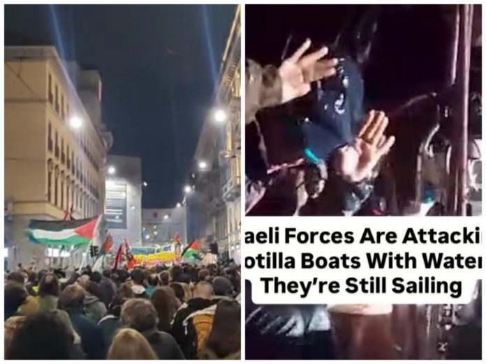 Intanto da nord a sud, nelle principali città italiane, migliaia di manifestanti pro-Pal sono scesi in piazza a sostegno degli attivisti della Global Sumud Flotilla, bloccati dalle forze israeliane. A Napoli gli attivisti hanno occupato i binari della stazione Centrale, causando l’interruzione del traffico ferroviario in arrivo e in partenza. A Roma i manifestanti hanno raggiunto la stazione Termini e bloccato il traffico in Piazza dei Cinquecento e nelle vie adiacenti. A Milano, dopo aver attraversato le vie del centro, un corteo è entrato alla stazione Cadorna. Cgil e Usb hanno proclamato uno sciopero generale per venerdì 3 ottobre. Ma il ministro Salvini frena e parla di possibile precettazione. Il caos è vivo.