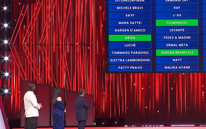 Arisa, Fulminacci, Serena Brancale, Ditonellapiaga, Fedez e Masini: è la prima classifica provvisoria, senza ordine di piazzamento, del Festival della canzone italiana, che ha preso il via ieri, martedì 24 febbraio, frutto del voto della Giuria della Sala Stampa, Tv e Web.
