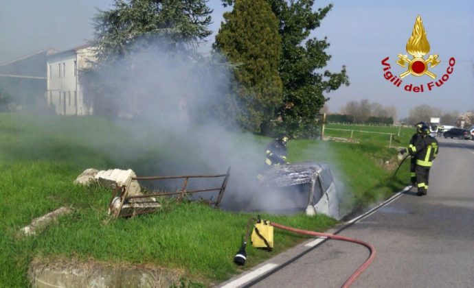 Sul posto sono intervenuti subito i vigili del fuoco di Lonigo, che hanno trovato l’auto avvolta dalle fiamme.