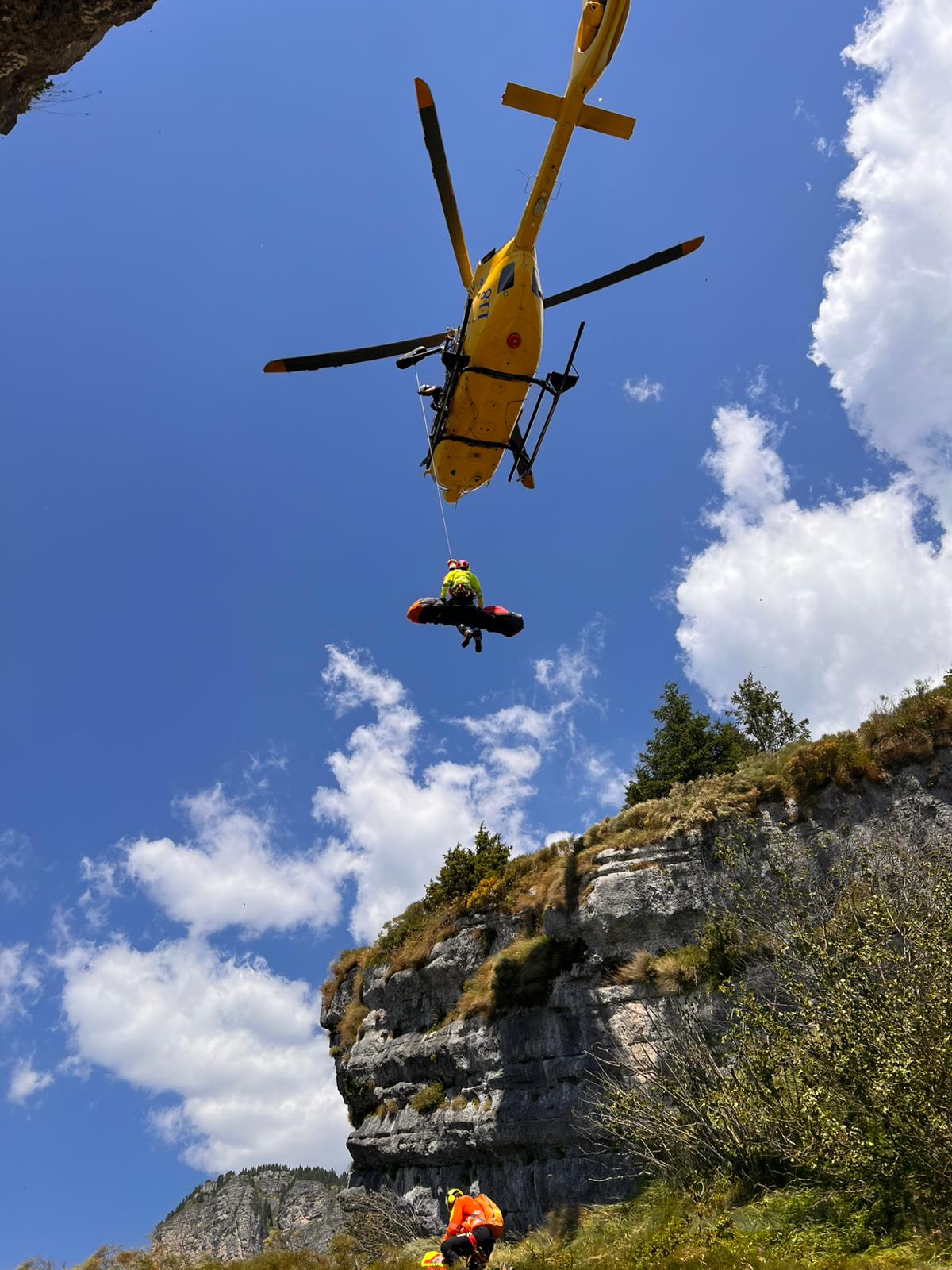 Una prima squadra veloce del soccorso alpino di Asiago è arrivata sul posto, dove l’elicottero di Verona emergenza aveva verricellato equipe medica e tecnico di elisoccorso. Attrezzata una calata per la discesa con la corda, i soccorritori, compreso il medico di stazione, hanno prestato le prime cure alla donna, che aveva riportato una sospetta frattura al gomito e varie contusioni.