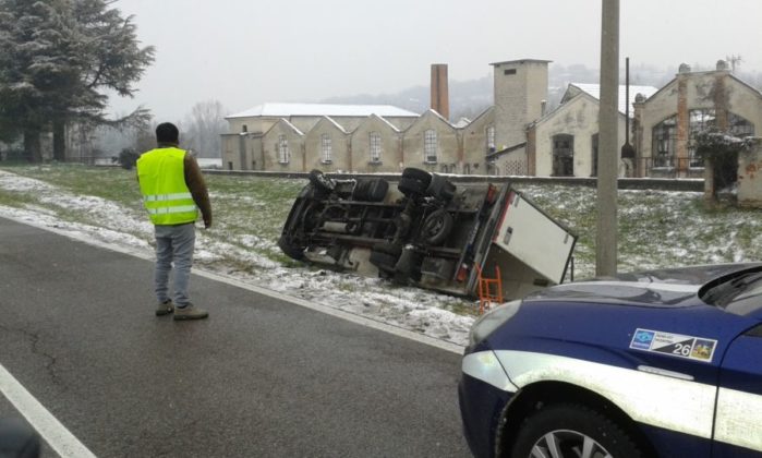 Anche a Sarcedo si registra il ribaltamento di un mezzo pesante, finito nel fossato in via Togarelli, sull’arteria SP68 che collega il paese alla vicina Zugliano in zona di campagna. Si è trattato di un autocarro Iveco della portata di 35 quintali, sbandato a causa della neve caduta sul manto stradale a seguito di una manovra improvvisa del pilota, costretto a evitare la collisione contro una vettura sbandata a sua volta sul senso di marcia opposto. L’autista, un cittadino originario dello Sri Lanka, residente a Verona, non è riuscito a mantenere il controllo del veicolo ribaltandosi su un fianco dopo il cappottamento, uscendo comunque incolume dall’incidente.