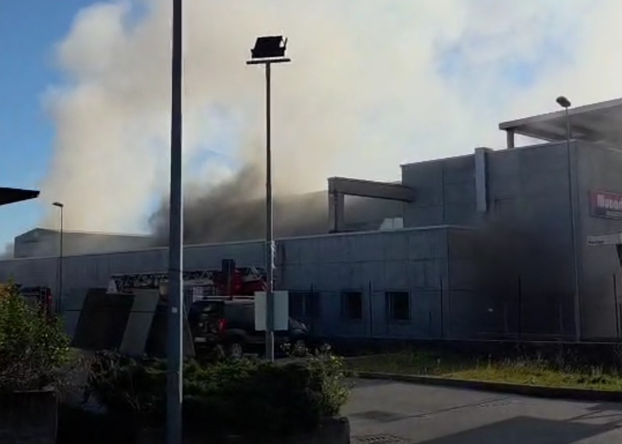 Vasto incendio ai magazzini Munari in viale Europa: fiamme alte e fumo nero in Ca’ Pajella – VIDEO