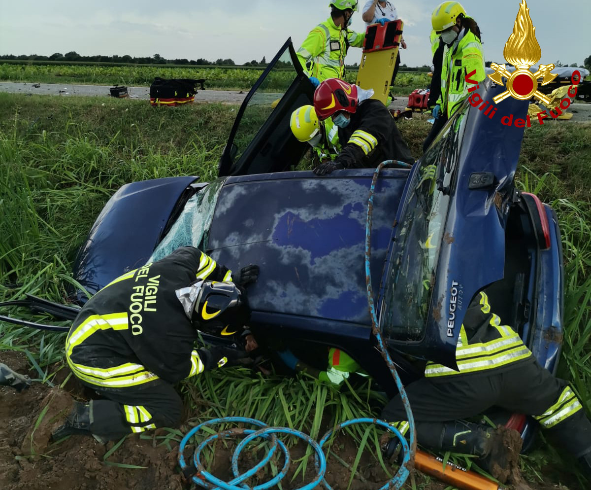 L’impatto fra le due auto, avvenuto in via Vicentina, è stato violentissimo: per soccorrere gli infortunati si è reso necessario far intervenire l’elisoccorso. I pompieri arrivati da Lonigo, dopo aver messo in sicurezza i mezzi, con difficoltà hanno estratto – utilizzando cesoie, martinetti e divaricatori idraulici – due donne incastrate all’interno di una vecchia Peugeot, finita parzialmente rovesciata in un campo a bordo strada. Si tratta di una mamma e di sua figlia, originarie di Montagnana: una volta stabilizzate le funzioni vitali da parte dei sanitari del Suem 118, sono state trasferite in elicottero e ambulanza in ospedale. Leggermente ferito anche l’automobilista alla guida della Golf Volkswagen coinvolta nell’incidente. La polizia locale ha deviato il traffico ed eseguito i rilievi del sinistro. Le operazioni di soccorso dei vigili del fuoco sono terminate alle 20.