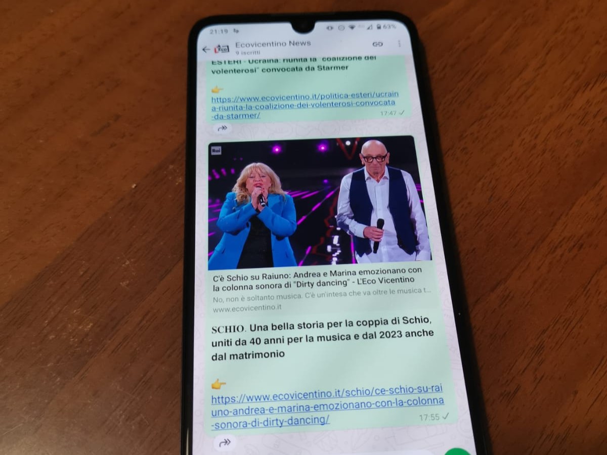Dopo qualche giorno di test, la notizia è ora ufficiale e il lancio vero e proprio può avvenire: per rimanere informati sulle nostre notizie locali e nazionali da oggi è possibile iscriversi ai canali di Eco Vicentino su Telegram e Whatsapp: sarà così possibile ricevere le notizie in tempo reale sul propria piattaforma di messaggistica preferita.