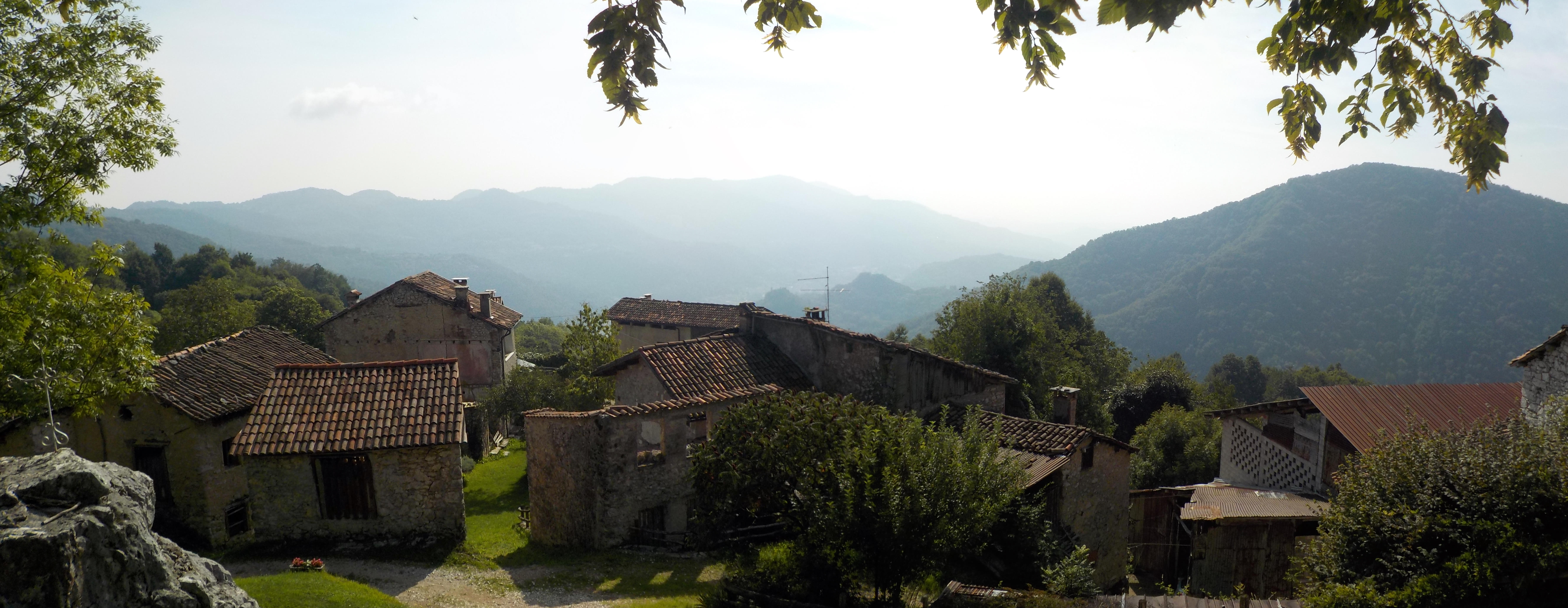 La bella contrada è adagiata su un pulpito erboso esposto a sud, su un piccolo fazzoletto libero dal bosco e da qui si vedono dal vicino Monte Turigi alle colline dell’altopiano di Faedo. Vale la pena sostare un momento tra le case e osservare i quadri che si presentano agli occhi: la vita dell’uomo che si fonde con la natura che lo circonda.