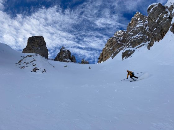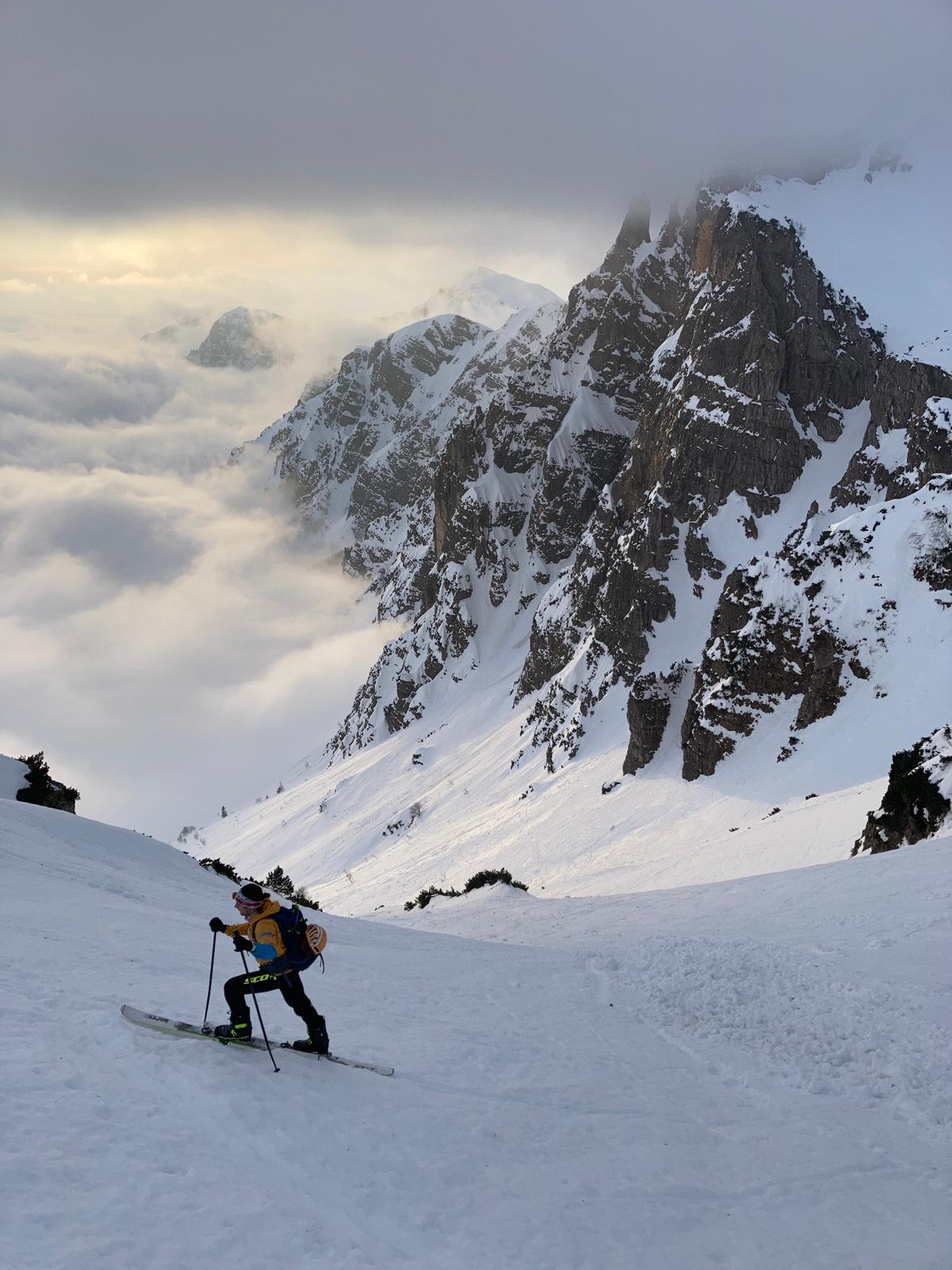 Questa è una discesa per ottimi sciatori alpinisti e se si trova la neve giusta è degna di essere comparata ai canali dolomitici.