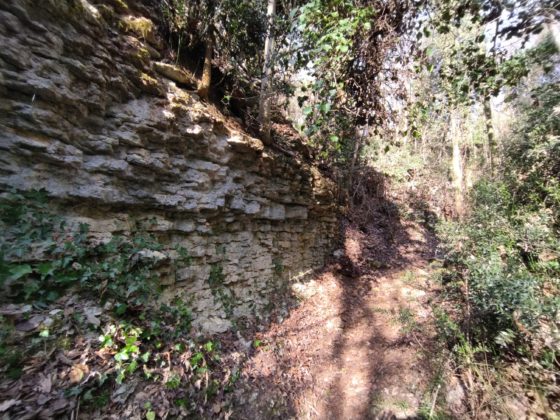 Proseguendo in quota ci si inoltra attraverso un bosco ceduo dove vegetano alcuni pini verso la località Rivalonga, per deviare poi a sinistra e risalire l’ultimo tratto di bosco fino alla recinzione della polveriera dell’Esercito Italiano che occupa una buona superficie del Monte Molinetto. Un sentiero compie tutto il perimetro dell’area militare che funge da deposito munizioni.