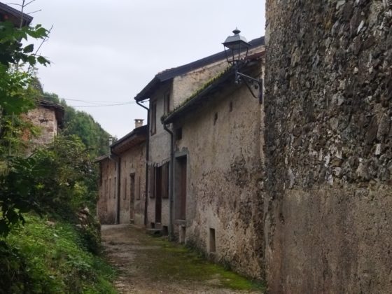 Dopo un breve tratto lungo la strada asfaltata si può scendere lungo un vecchio sentiero poco evidente che cavalca una crestina tra due solchi minori, passando vicino Contrada Bonati e seguendo successivamente il Torrente Acquasaliente. Un vecchio edificio, forse un mulino, si incontra tra le rocce della valle poco sopra il corso dell’acqua. Esiste un vecchio e interessante sentiero di collegamento tra le contrade che attraversa il bosco lungo ripidi versanti e passando alcuni ponticelli in legno.