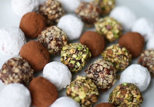 Si preparano con 320 grammi di cioccolato fondente almeno al 70% tagliati sottilmente, 120 grammi di panna da montare e 90 grammi di burro. Si mettono in una casseruola di rame e si fanno scogliere a fuoco bassissimo o a bagnomaria. Dopodiché si tolgono dal fuoco e si aggiungono uno alla volta 2 tuorli d’uovo e si lascia intiepidire. Una volta raffreddato con questo composto si formano delle palline.