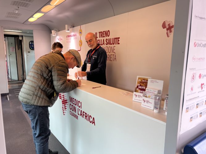 Arianna La Rosa, del Cuamm, ringraziando a nome di don Dante Carraro e di tutto il Cuamm, le tante persone coinvolte, aggiunge: “Il Treno è un mezzo che avvicina, che mette in comunicazione e in contatto tante persone, molto diverse. Questo Treno della Salute è speciale perché porta vicini alla gente dei servizi utili, come la prevenzione e gli screening, senza dimenticare l’educazione e la sensibilizzazione. E insieme racconta il nostro impegno in Africa, lì dove il bisogno di cure è infinitamente più grande”.
