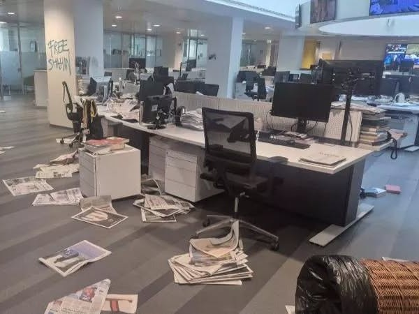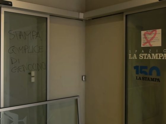 A Torino ieri un gruppo di manifestanti, circa un centinaio, pro-Palestina hanno fatto irruzione e causato gravi danni alla redazione del quotidiano La Stampa in via Lugaro, praticamente deserta a causa dello sciopero dei giornalisti per il rinnovo del contratto di lavoro e a difesa dell’informazione libera, democratica e plurale. La pattuglia, dopo avere imbrattato con il letame i cancelli, è riuscita a entrare nei locali tramite un’entrata secondaria e ha poi vandalizzato la redazione rovesciando scrivanie, danneggiando pc e lasciando scritte sui muri tra cui “Complici del genocidio a Gaza”.