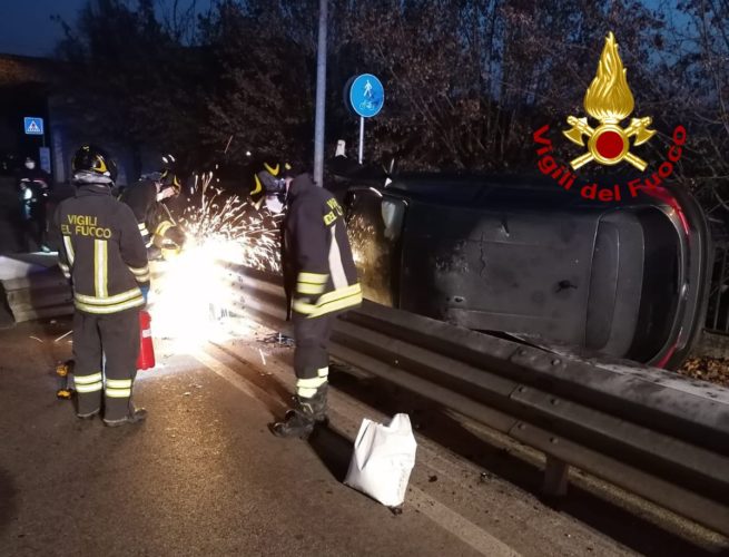 Poco prima dell’alba di domenica, i vigili del fuoco sono intervenuti in viale Sant’Agostino a Vicenza per un’auto finita rovesciata su un fianco contro il guardrail, dopo la perdita di controllo da parte del conducente rimasto ferito.