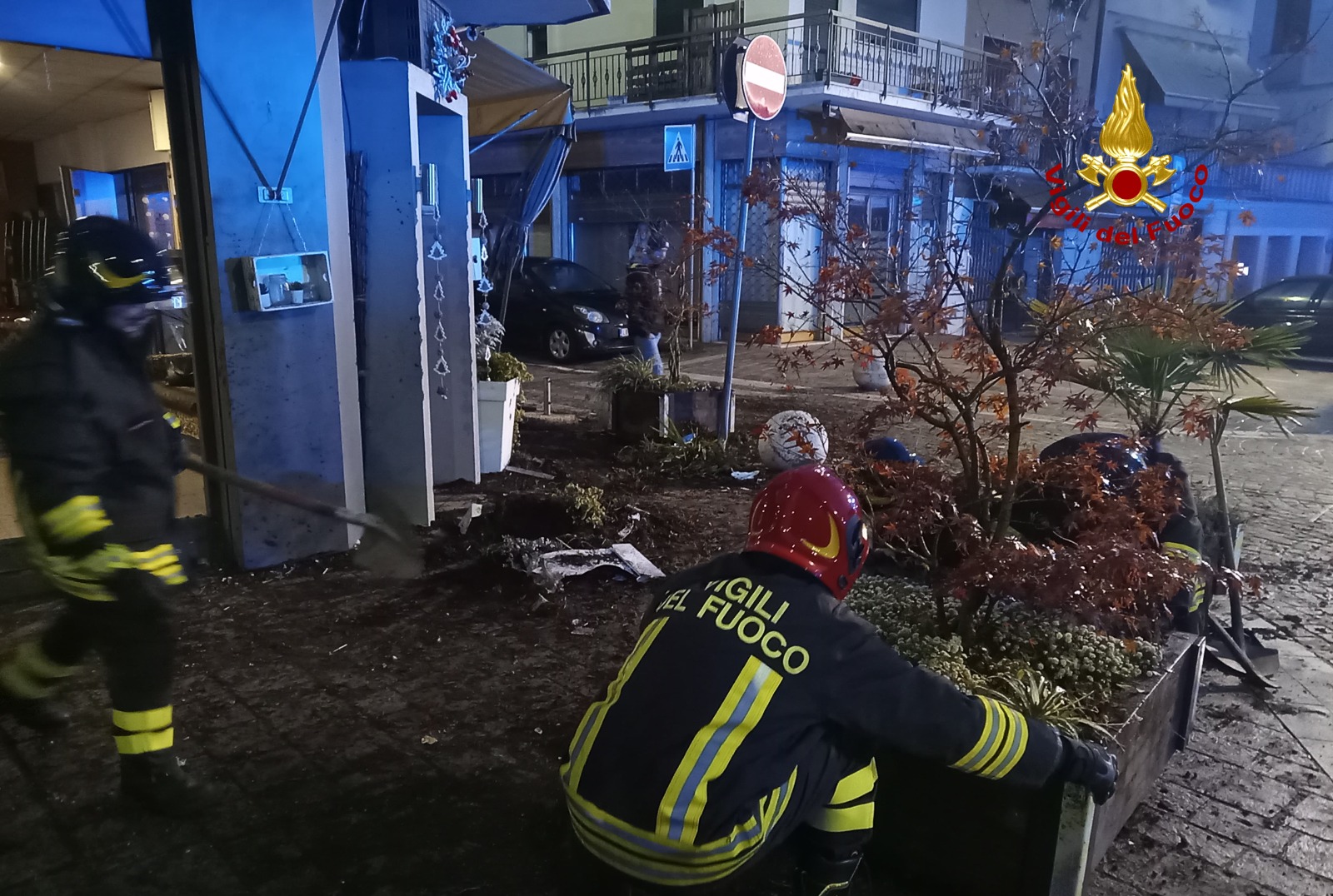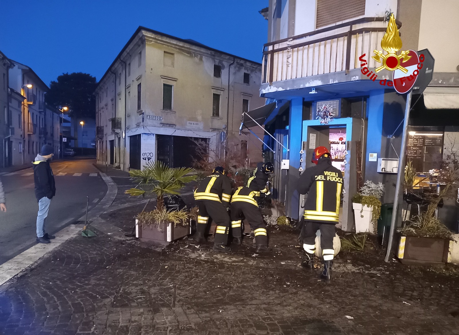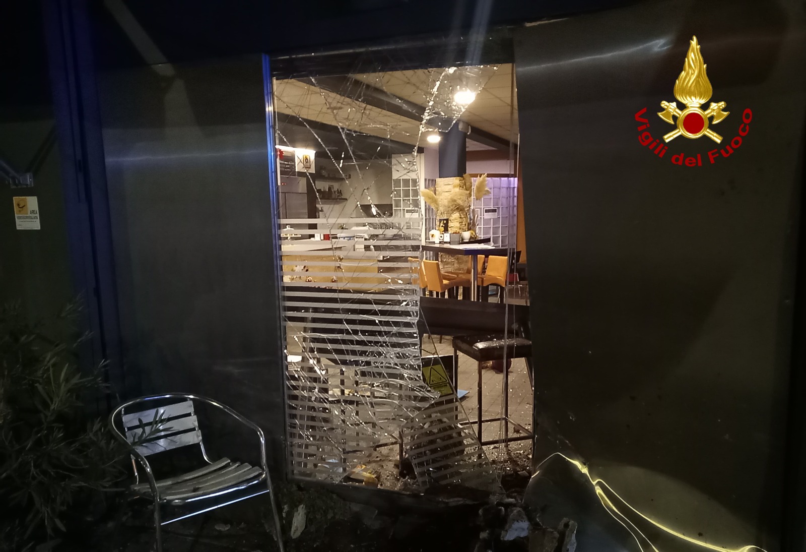 Alle prime luci dell’alba di oggi i Vigili del Fuoco sono intervenuti in Piazza Rovereto a Thiene per un’auto che, evidentemente uscita dritta allo stop, ha invaso il plateatico di un bar per poi abbatterne la vetrina. Non si hanno notizie di persone ferite, dato che l’auto col suo guidatore si è poi allontanata.