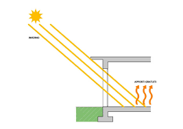 Durante l’inverno i raggi del sole, nonostante nelle ore più calde della giornata rimangano bassi, riescono a raggiungere il prospetto dell’edificio e gli interni, dando un contributo al riscaldamento degli ambienti. Durante il periodo estivo succede l’inverso. I raggi del sole, quasi perpendicolari all’edificio, vengono bloccati dal terrazzo. Quest’ultimo assicura un ombreggiamento sulle pareti rivolte al sole, in modo da non riscaldare gli ambienti interni, soggetti già al calore delle temperature estive.