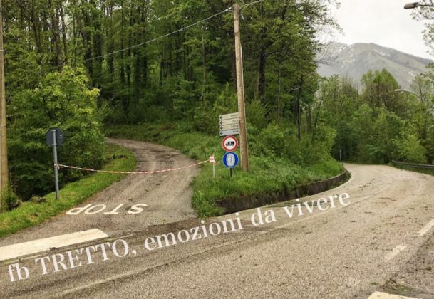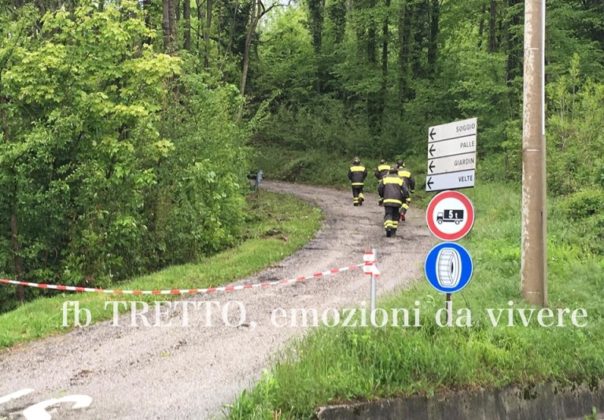 Pompieri impegnati anche per una frana, che sta interessando la strada che da contrada San Ulderico va verso contrada Giardin, Palle, Soggio e Velte a Schio con il blocco della circolazione a cauda di un cedimento stradale.