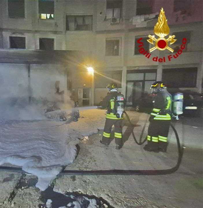 Grazie all’impiego di schiumogeni estinguenti, i pompieri hanno velocemente domato le fiamme divampate all’esterno di un edificio in Strada Regionale 11, limitando i danni ai soli veicoli coinvolti hanno evitato il propagarsi dell’incendio agli stabili vicini. Dopo aver messo in sicurezza l’area interessata i vigili del fuoco hanno lasciato la zona rientrando alle sedi di servizio, sul posto erano presenti anche i carabinieri, le cause sono al vaglio dei tecnici dei vigili del fuoco.