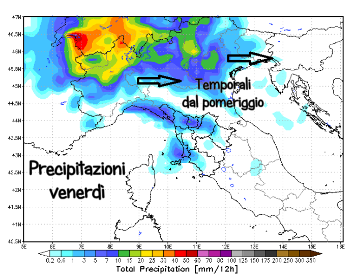 La mattina da poco a parzialmente nuvoloso, nubi più presenti in montagna. Ci sarà un po’ di instabilità nelle ore centrali della giornata con locali rovesci o temporali su Prealpi e alte pianure. Temperature in calo di 3-4°C rispetto i giorni precedenti.