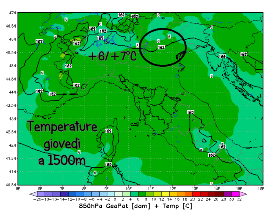 Come nelle precedenti giornate, clima invernale e stabile in pianura e mite in montagna per effetto dell’inversione termica. Zero termico oltre i 2000m